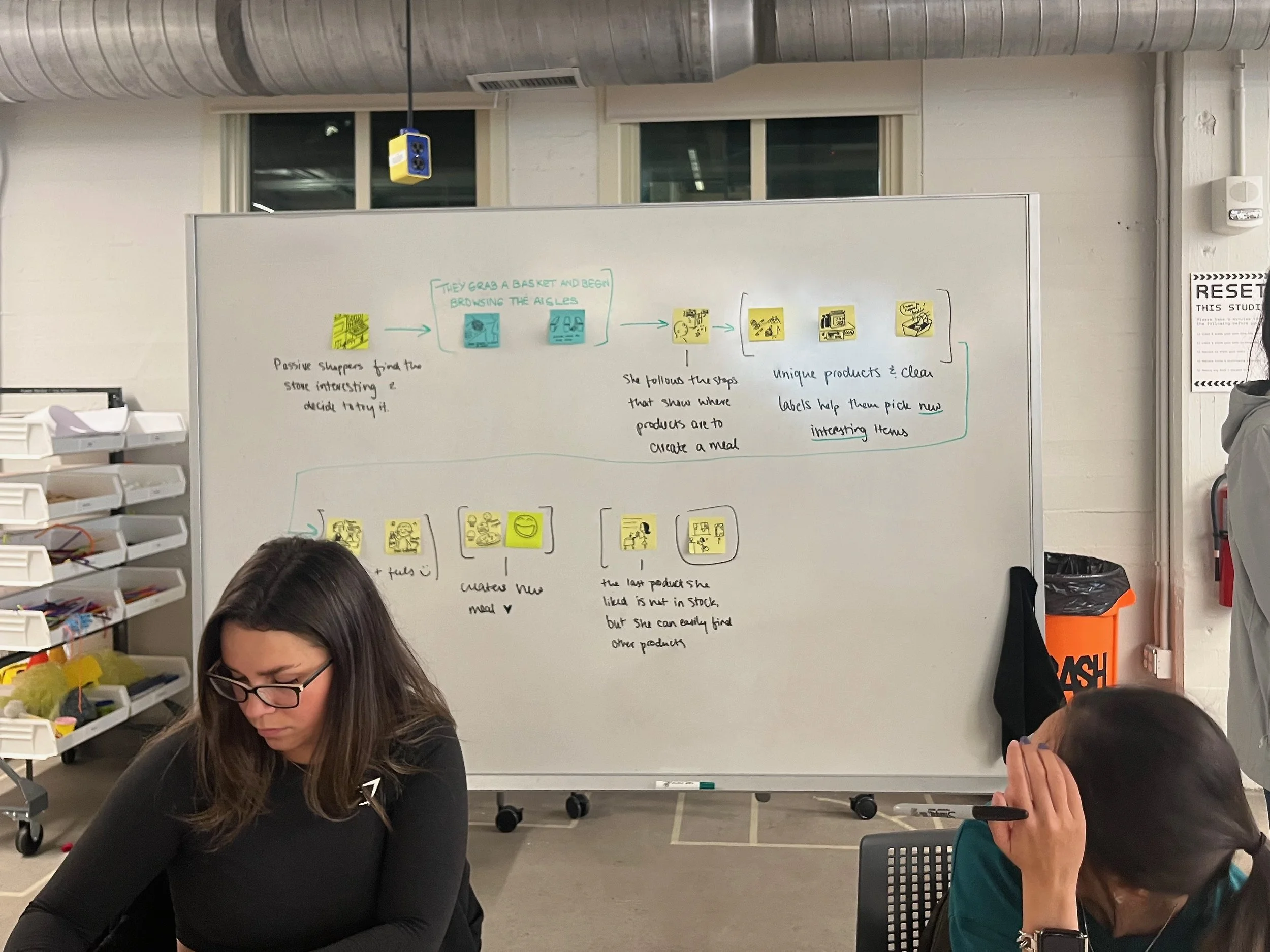 As a team, we created a collaborative storyboard birthed from an ideation exercise where we combined our different ideas from different stages of a passive shopper’s journey and worked to see if we could make a story from it. While this is not our official storyboard, I wanted to add it here as it was definitely a fun and creative exercise we were able to do together!